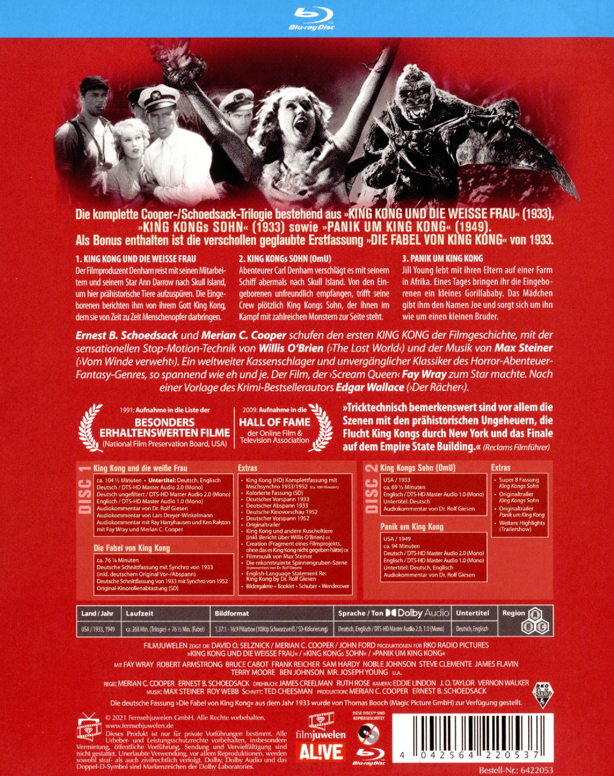 Als Bonus enthalten ist die verschollen geglaubte Erstfassung "DIE FABEL VON KING KONG" (1933)