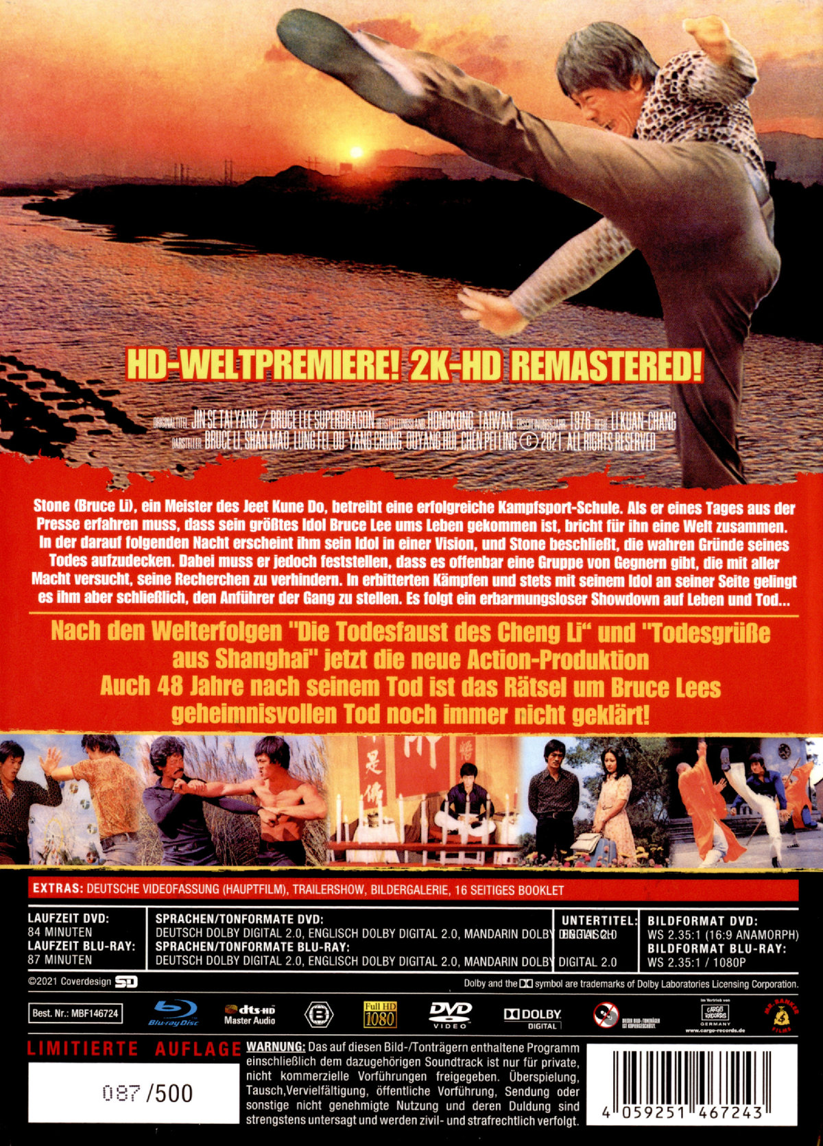 Hauptfilm FSK 16 - Bonusmaterial: FSK 18;HD-Weltpremiere! 2K-HD-remastered!;Erstmals ungeschnitten! Streng limitiert und durchnummeriert auf nur 500 Stück!;Bonus: Langfassung, 16-seitiges Booklet, Trailer;Bildergalerie;