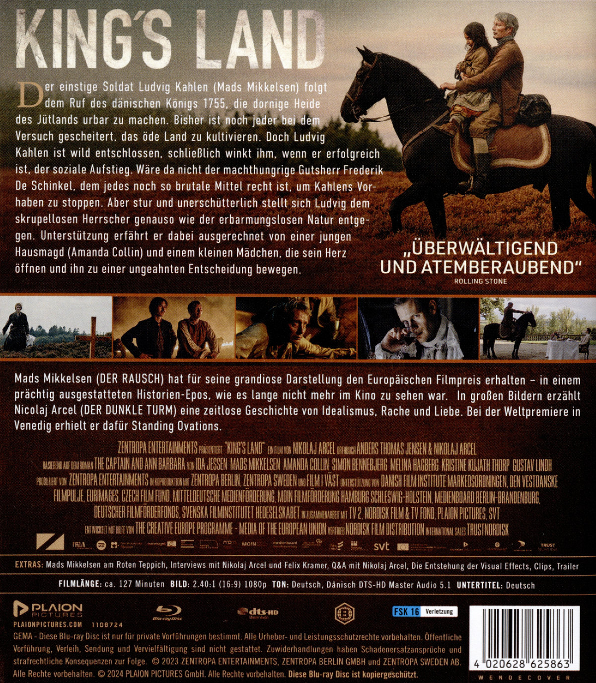 Der einstige Soldat Ludvig Kahlen (Mads Mikkelsen) folgt dem Ruf des dänischen Königs 1755, die dornige Heide des Jütlands urbar zu machen. Bisher ist noch jeder bei dem Versuch gescheitert, das öde Land zu kultivieren. Doch Ludvig Kahlen ist wild entschlossen, schließlich winkt ihm, wenn er erfolgreich ist, der soziale Aufstieg. Wäre da nicht der machthungrige Gutsherr Frederik De Schinkel, dem jedes noch so brutale Mittel recht ist, um Kahlens Vorhaben zu stoppen. Aber stur und unerschütterlich stellt sich Ludvig dem skrupellosen Herrscher genauso wie der erbarmungslosen Natur entgegen. Unterstützung erfährt er dabei ausgerechnet von einer jungen Hausmagd (Amanda Collin) und einem kleinen Mädchen, die sein Herz öffnen und ihn zu einer ungeahnten Entscheidung bewegen. Mads Mikkelsen (DER RAUSCH) hat für seine grandiose Darstellung den Europäischen Filmpreis erhalten – in einem prächtig ausgestatteten Historien-Epos, wie es lange nicht mehr im Kino zu sehen war. In großen Bildern erzählt Nicolaj Arcel (DER DUNKLE TURM) eine zeitlose Geschichte von Idealismus, Rache und Liebe. Bei der Weltpremiere in Venedig erhielt er dafür Standing Ovations.