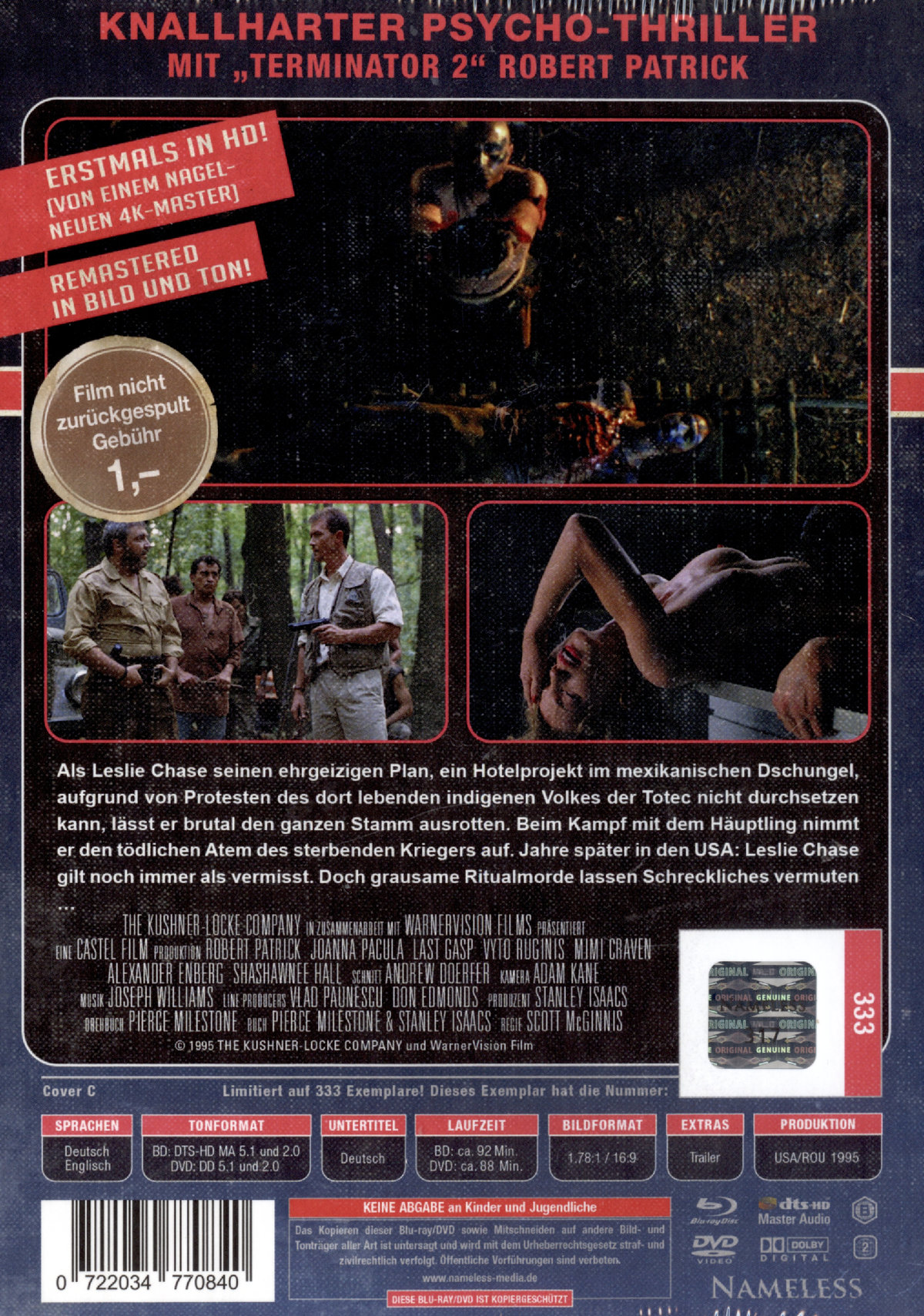 Leslie Chase will im mexikanischen Dschungel um jeden Preis ein gigantisches Hotelprojekt realisieren. Dafür geht er über Leichen: Er lässt den gesamten Stamm der protestierenden Totec Indianer grausam ausrotten. Den Häuptling tötet er selbst - doch dieser haucht ihm seinen Todesatem ein und verflucht ihn. Leslie ist seitdem verschwunden. Doch ist er wirklich tot? Denn eine Reihe von mysteriösen Ritualmorden führt zu einem schrecklichen Geheimnis...