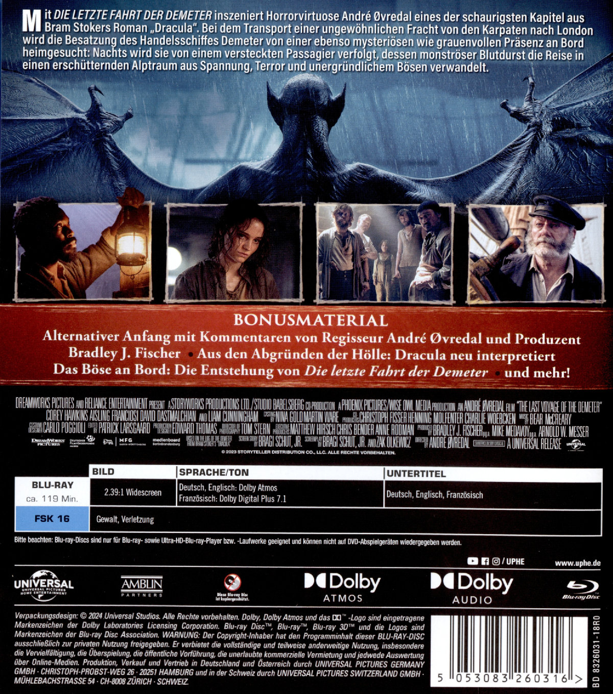 Alternativer Anfang,Unveröffentlichte Szenen,Dracula & Das digitale Zeitalter,Das Böse an Bord: Die Entstehung von "Die letzte Fahrt der Demeter",Filmkommentar mit Regisseur André Øvredal und Produzent Bradley J. Fischer, u.v.m.