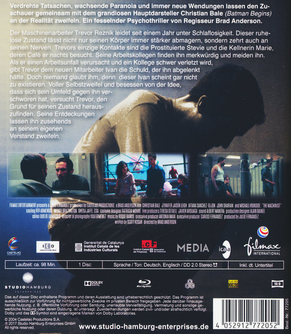 Verdrehte Tatsachen, wachsende Paranoia und immer neue Wendungen lassen den Zuschauer gemeinsam mit dem grandiosen Hauptdarsteller Christian Bale („Batman Begins“) an der Realität zweifeln. Ein fesselnder Psycho-Thriller von Regisseur Brad Anderson („Transsiberian“).