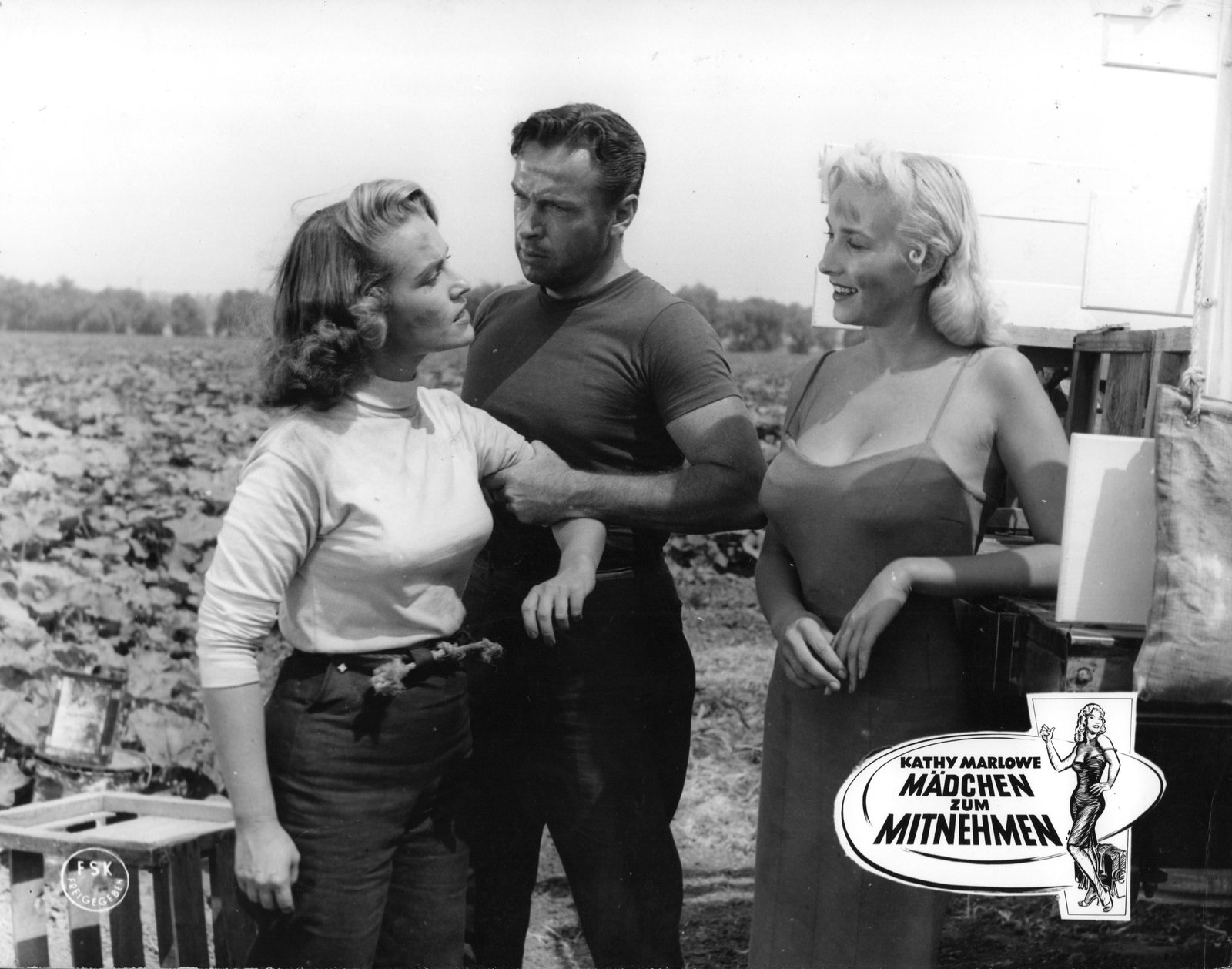 Die einsame, verwitwete Herumtreiberin Mari Lou Waverly (KATHY MARLOWE) wird auf einer kalifornischen Wüstenstraße ausgesetzt und fährt per Anhalterin beim umherziehenden Landarbeiter Jake (SCOTT DOUGLAS) mit. Der sexy Rauschgoldengel möchte auf den Feldern Arbeit finden. Als sie den Besitzer der Melonenfarm, den Witwer Ben Cooper (Robert Armstrong) trifft, macht das Luder ihm schöne Augen. Der alte Narr verfällt dem blonden Biest. Die nymphoman veranlagte Mari Lou lässt derweil nichts anbrennen. Mit den Arbeitern der Ranch lässt sie sich ebenso ein, wie mit Saloon-Gesindel. Sie versucht sogar Coopers Sohn Orrie (Robert Clarke) in der Scheune zu verführen, der sich jedoch mit Ekel abwendet. Diese Abfuhr möchte das mannstolle Weibstück nicht auf sich sitzen lassen. Sie schmiedet einen teuflischen Plan... Produktion: USA 1958