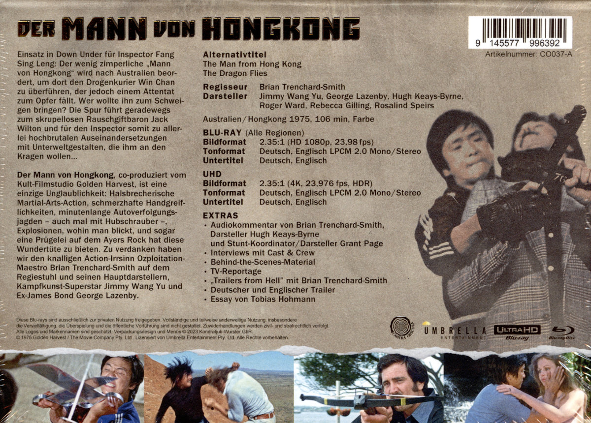 DER MANN VON HONGKONG, co-produziert vom Kult-Filmstudio Golden Harvest, ist eine einzige Unglaublichkeit: Halsbrecherische Martial-Arts-Action, schmerzhafte Handgreiflichkeiten, minutenlange Autoverfolgungsjagden