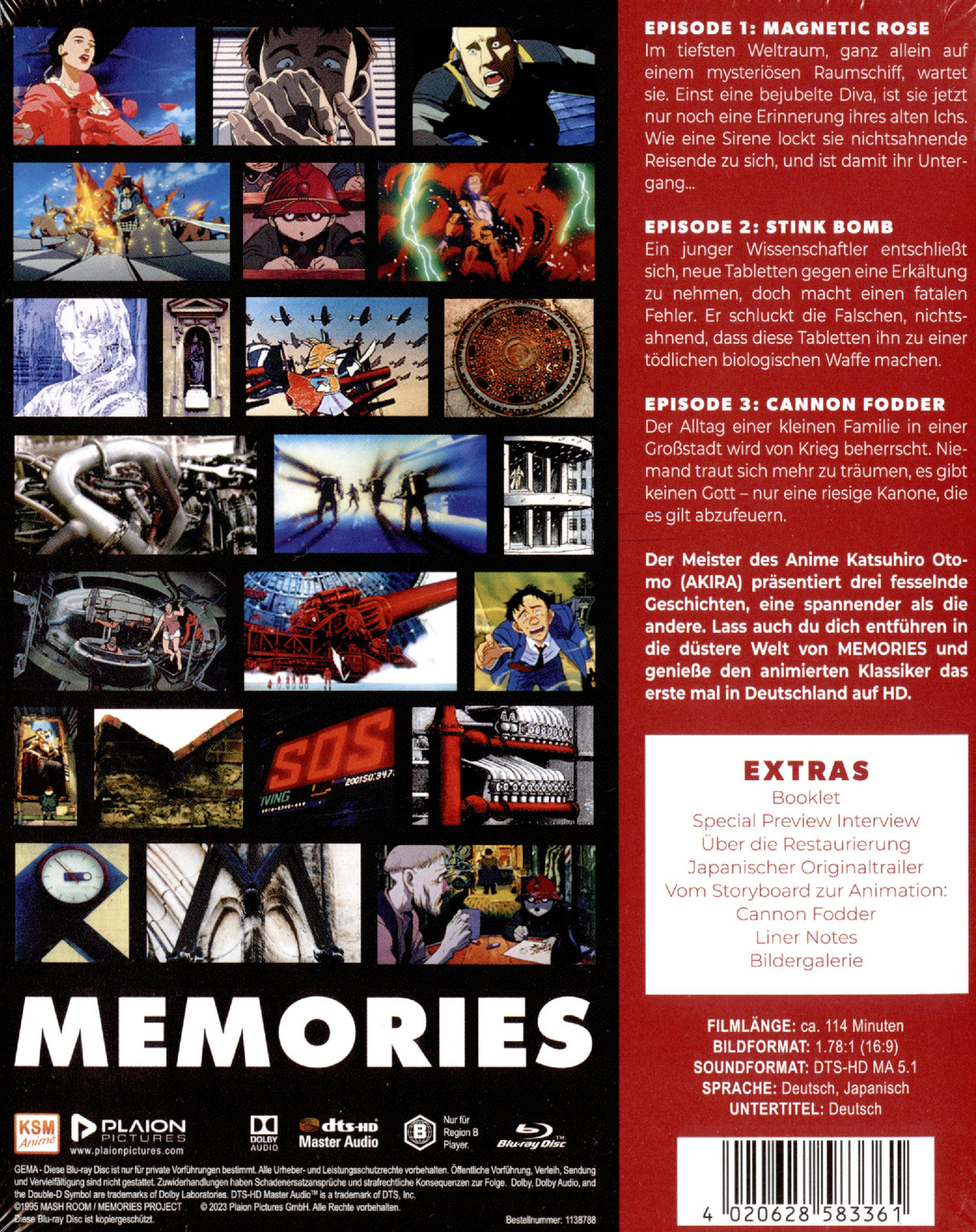 Der Meister des Anime Katsuhiko Otomo (AKIRA) präsentiert drei fesselnde Geschichten, eine spannender als die andere. Lass auch du dich entführen in die düstere Welt von MEMORIES und genieße den animierten Klassiker das erste mal in Deutschland auf HD.