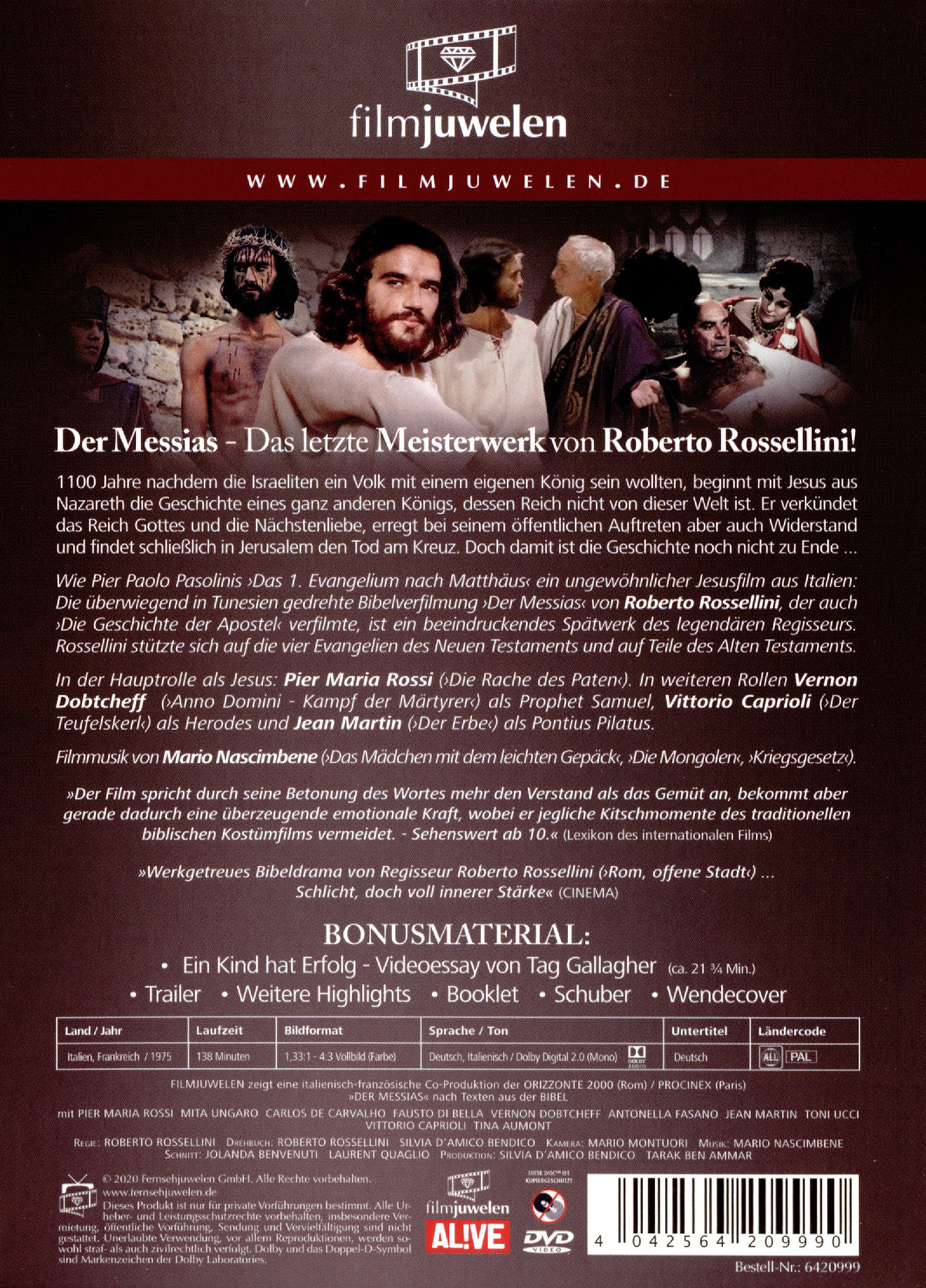 Ausstattung der DVD: Booklet mit Hintergrundinformationen, Schuber, Wendecover Bonusmaterial: Filmessay von Tag Gallagher (ca. 22 Min. / OmU), Biografie Roberto Rossellini (Texttafeln), Trailer zu weiteren Highlights