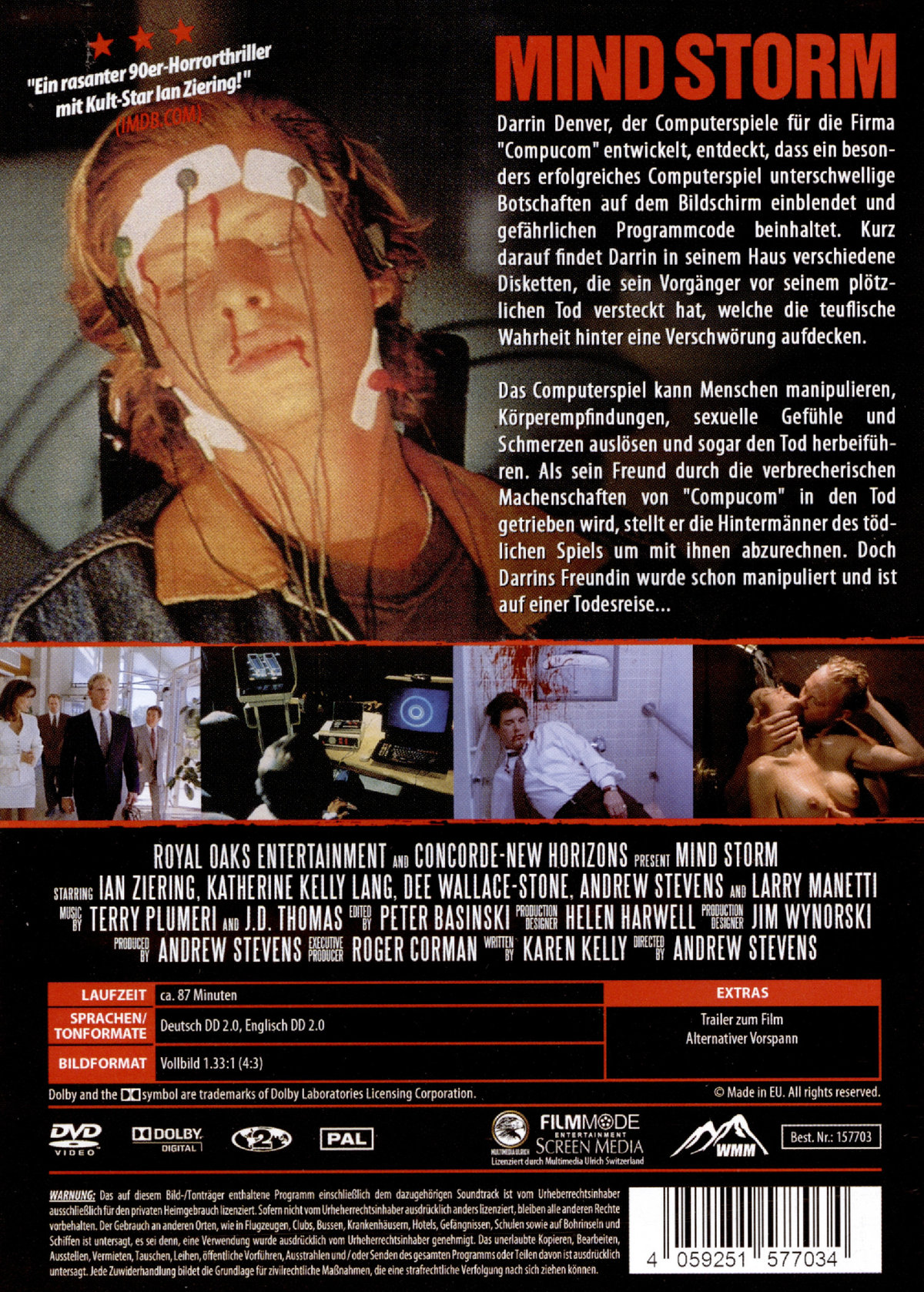 Roger Corman presents: Mindstorm Darrin Denver, der Computerspiele für die Firma "Compucom" entwickelt, entdeckt, dass ein besonders erfolgreiches Computerspiel unterschwellige Botschaften auf dem Bildschirm einblendet und gefährlichen Programmcode beinhaltet. Darrin findet in seinem Haus Disketten, die sein Vorgänger vor seinem plötzlichen Tod versteckt hat, welche die teuflische Wahrheit aufdecken. Das Computerspiel kann Menschen manipulieren, Körperempfindungen, sexuelle Gefühle und Schmerzen auslösen und sogar den Tod herbeiführen. Als sein Freund durch die verbrecherischen Machenschaften von "Compucom" in den Tod getrieben wird, stellt er die Hintermänner des tödlichen Spiels um mit ihnen abzurechnen. Doch Darrins Freundin wurde schon manipuliert und ist auf einer Todesreise...
