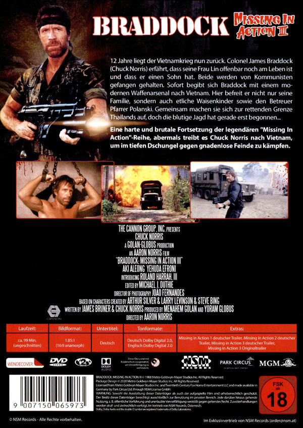 Missing in Action 1 ; Original Trailer; Missing In Action 2 ; Deutscher Trailer; Missing In Action 3 ; Deutscher Trailer; Missing In Action 3 ; Original TrailerWendecover;
