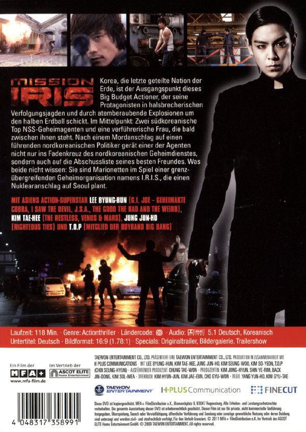 Korea, die letzte geteilte Nation der Erde, ist der Ausgangspunkt dieses Big Budget Actioner, der seine Protagonisten in halsbrecherischen Verfolgungsjagden und durch atemberaubende Explosionen um den halben Erdball schickt. Im Mittelpunkt: Zwei südkoreanische Top NSS-Geheimagenten und eine verführerische Frau, die bald zwischen ihnen steht. Nach einem Mordanschlag auf einen führenden nordkoreanischen Politiker gerät einer der Agenten nicht nur ins Fadenkreuz des nordkoreanischen Geheimdienstes, sondern auch auf die Abschussliste seines besten Freundes. Was beide nicht wissen: Sie sind Marionetten im Spiel einer grenzübergreifenden Geheimorganisation namens I.R.I.S., die einen Nuklearanschlag auf Seoul plant.