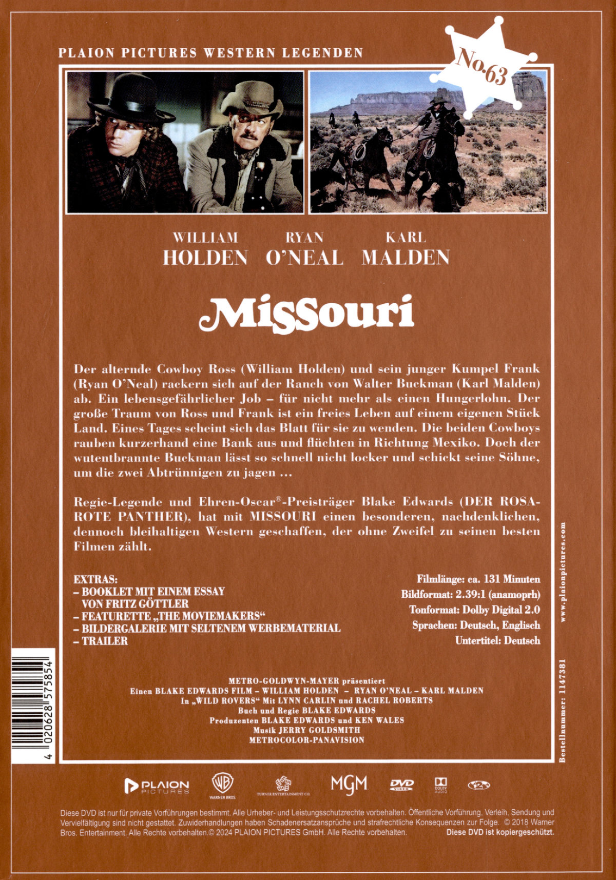 Regie-Legende und Ehren-Oscar -Preisträger Blake Edwards (DER ROSAROTE PANTHER), hat mit MISSOURI einen besonderen, nachdenklichen, dennoch bleihaltigen Western geschaffen, der ohne Zweifel zu seinen besten Filmen zählt.
