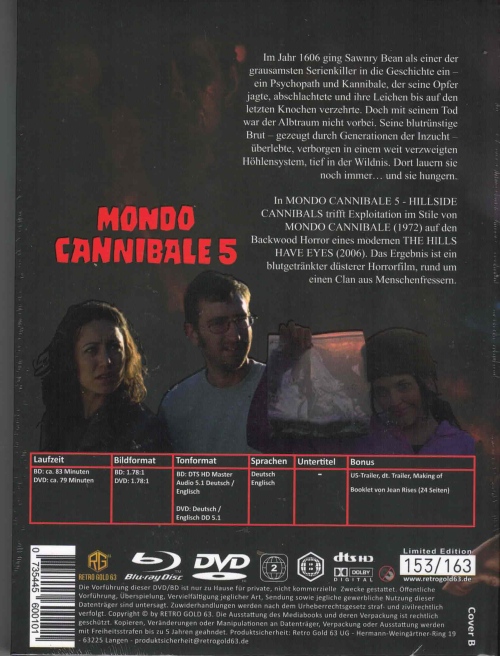 Im Jahre 1606 lauerte der Kannibale Sawney Bean im Verborgenen, fiel über ahnungslose Reisende her, metzelte sie nieder wie Vieh und fraß ihre Körper bis auf den letzten Knochen. Doch mit seinem Tod endete der Albtraum nicht. Seine abscheuliche Brut – gezeugt durch Inzucht über Generationen – kroch zurück in die Tiefen eines labyrinthartigen Höhlensystems, fernab der Zivilisation. Und dort sind sie noch immer. Sie verstecken sich. Sie beobachten. Und sie sind hungrig. In MONDO CANNIBALE 5 - HILLSIDE CANNIBALS trifft Exploitaton im Stile von MONDO CANNIBALE (1972) auf den Backwood Horror eines modernen THE HILLS HAVE EYES (2006), das Ergebnis ist ein blutgetränkter düsterer Horrorfilm, run um einen Clan aus Menschenfressern.