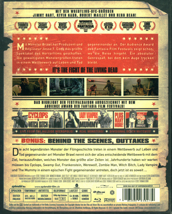 Die acht legendärsten Monster der Filmgeschichte treten in einem Wettbewerb auf Leben und Tot gegeneinander an! Monster Brawl nennt sich der alles entscheidende Wettbewerb, der uns herausfinden lässt, welches Monster das größte aller Zeiten ist. Jahrhunderte haben wir warten müssen bis Cyclops, Swamp Gut, Frankenstein, Werwolf, Zombie Man, Witch Bitch, Lady Vampire und The Mummy in einen epischen Fight gegeneinander antreten, doch jetzt ist es soweit...