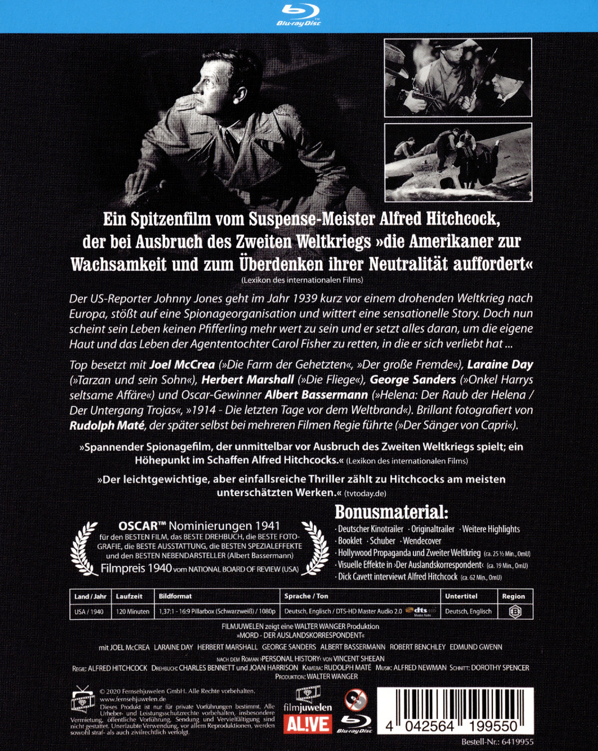 Produktinformationen "Mord - Der Auslandskorrespondent - Alfred Hitchcock (blu-ray)"