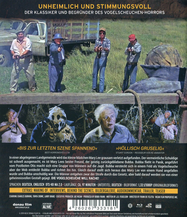 In einer abgelegenen Landgemeinde wird das kleine Mädchen Mary Lee grausam verletzt aufgefunden. Der vermeintliche Schuldige ist schnell ausgemacht, es ist Mary Lees bester Freund, der geistig zurückgebliebene Bubba. Bubba flieht in Panik, angeführt vom Postboten Otis macht sich eine Gruppe von Männern auf die Jagd. Bubba versteckt sich in einem Feld als Vogelscheuche aber der Mob entdeckt Bubba und richtet ihn hin. Gleich darauf stellt sich heraus das Mary Lee von einem Hund angefallen wurde und Bubba unschuldig war. Die Männer entgehen zwar der Strafe durch das Gesetz, aber bald darauf werden sie von einer geheimnisvollen Gestalt gejagt. Die Vogelscheuche will Rache!