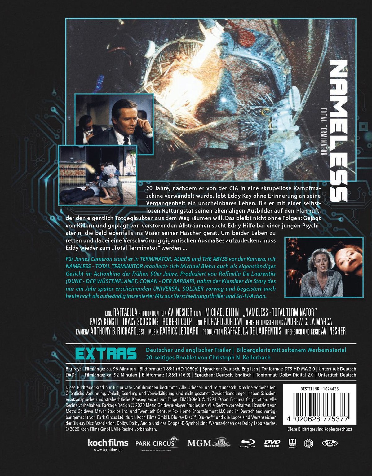 Für James Cameron stand er in TERMINATOR, ALIENS und THE ABYSS vor der Kamera, mit NAMELESS – TOTAL TERMINATOR etablierte sich Michael Biehn auch als eigenständiges Gesicht im Actionkino der frühen 90er Jahre. Produziert von Raffaela de Laurentiis (DUNE – DER WÜSTENPLANET, CONAN – DER BARBAR), nahm der Klassiker die Story des nur ein Jahr später erscheinenden UNIVERSAL SOLDIER vorweg und begeistert auch heute noch als aufwändig inszenierter Mix aus Verschwörungsthriller und Sci-Fi-Action.