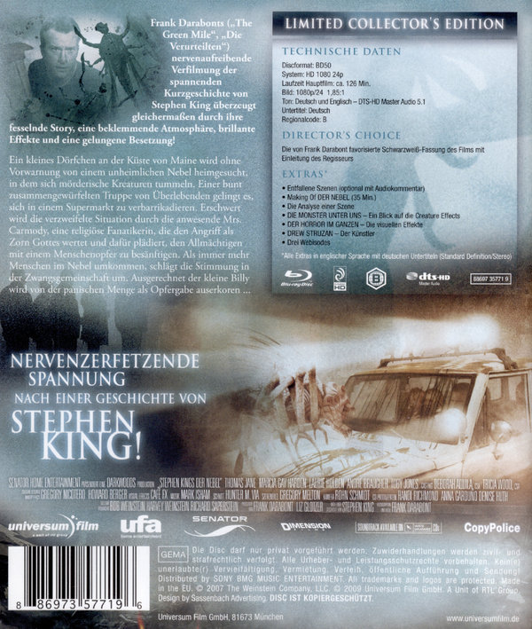 Endlich wieder mal ein guter Horrorfilm, und er ist kein billiger Abklatsch von THE FOG-NEBEL DES GRAUENS. Spannung und Gänsehaut sind garantiert, auch wenn mitnichten nicht ganz jene beängstigende Atmosphäre von THE FOG erreicht wird. Dennoch, an dem Werk ist eigentlich nichts wirklich zu beanstanden. Auch die Darsteller(innen) sind positiv hervorzuheben, vor allem die Religionsfanatikerin konnte Einem wirklich nerven. Für mich war es, sorry, direkt eine Wohltat, als ihr der Supermarktangestellte endlich den Fangschuss ins Hirn pustete. Schade, dass es am Ende kein richtiges Happyend gibt, aber wann hat schon ein Horrorfilm ein solches zu bieten. Bild & Ton sind makellos, absolute Kaufempfehlung, daher volle Punktezahl.