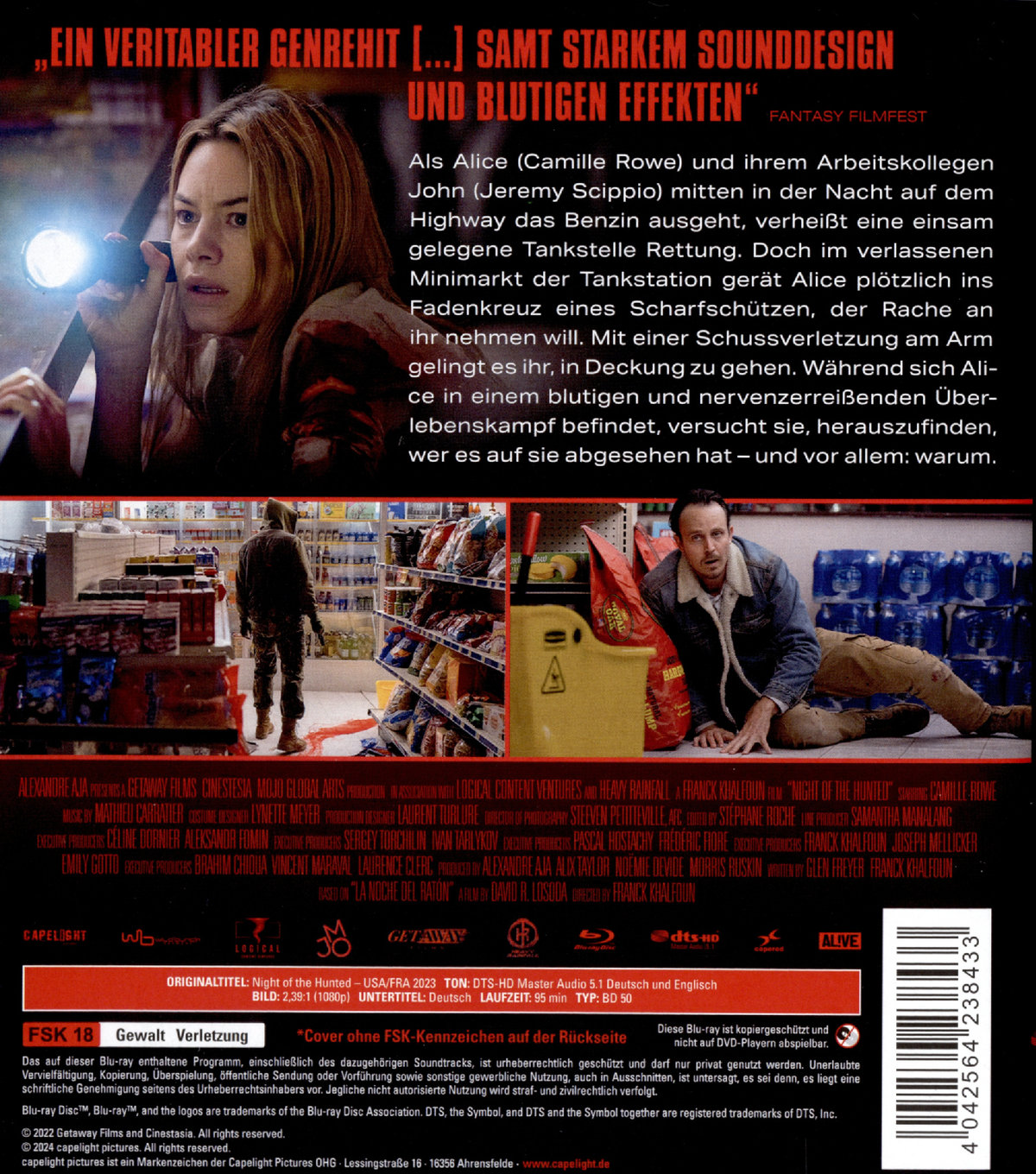 Als Alice (Camille Rowe) und ihrem Arbeitskollegen John (Jeremy Scippio) mitten in der Nacht auf dem Highway das Benzin ausgeht, verheißt eine einsame Tankstelle Rettung. Doch im verlassenen Minimarkt der Tankstation gerät Alice plötzlich ins Fadenkreuz eines Scharfschützen, der Rache an ihr nehmen will. Mit einer Schussverletzung am Arm gelingt es ihr, in Deckung zu gehen. Während sich Alice in einem blutigen und nervenzerreißenden Überlebenskampf befindet, versucht sie, herauszufinden, wer es auf sie abgesehen hat – und vor allem: warum.
