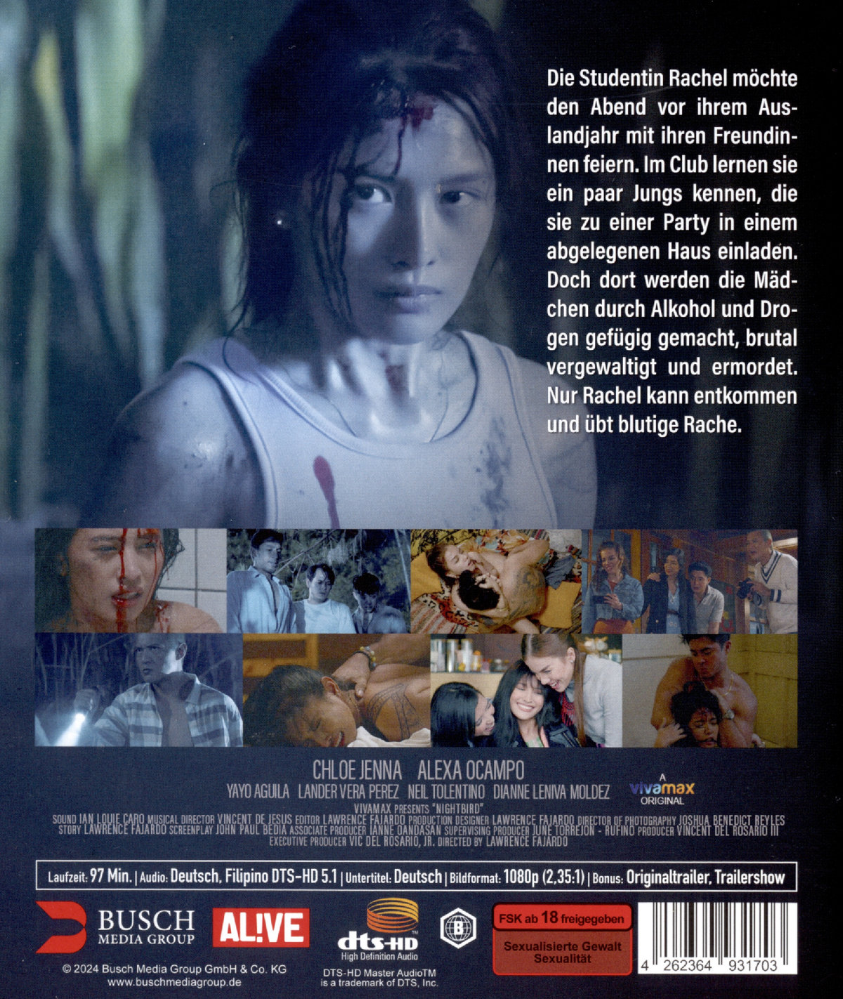 Provokanter Rape & Revenge Thriller. Die Studentin Rachel möchte den Abend vor ihrem Auslandsjahr mit ihren Freundinnen feiern. Im Club lernen sie ein paar Jungs kennen, die sie zu einer Party in einem abgelegenen Haus einladen. Doch dort werden die Mädchen durch Alkohol und Drogen gefügig gemacht, brutal vergewaltigt und ermordet. Nur Rachel kann entkommen und übt blutige Rache.