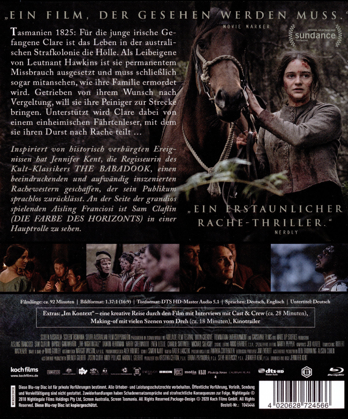 Inspiriert von historisch verbürgten Ereignissen hat Jennifer Kent, die Regisseurin des modernen Kult-Klassikers THE BABADOOK, einen beeindruckenden und aufwändig inszenierten Rachewestern geschaffen, der sein Publikum sprachlos zurücklässt. An der Seite der grandios spielenden Aisling Franciosi ist Sam Claflin (DIE FARBE DES HORIZONTS, EIN GANZES HALBES JAHR) in einer Hauptrolle zu sehen.