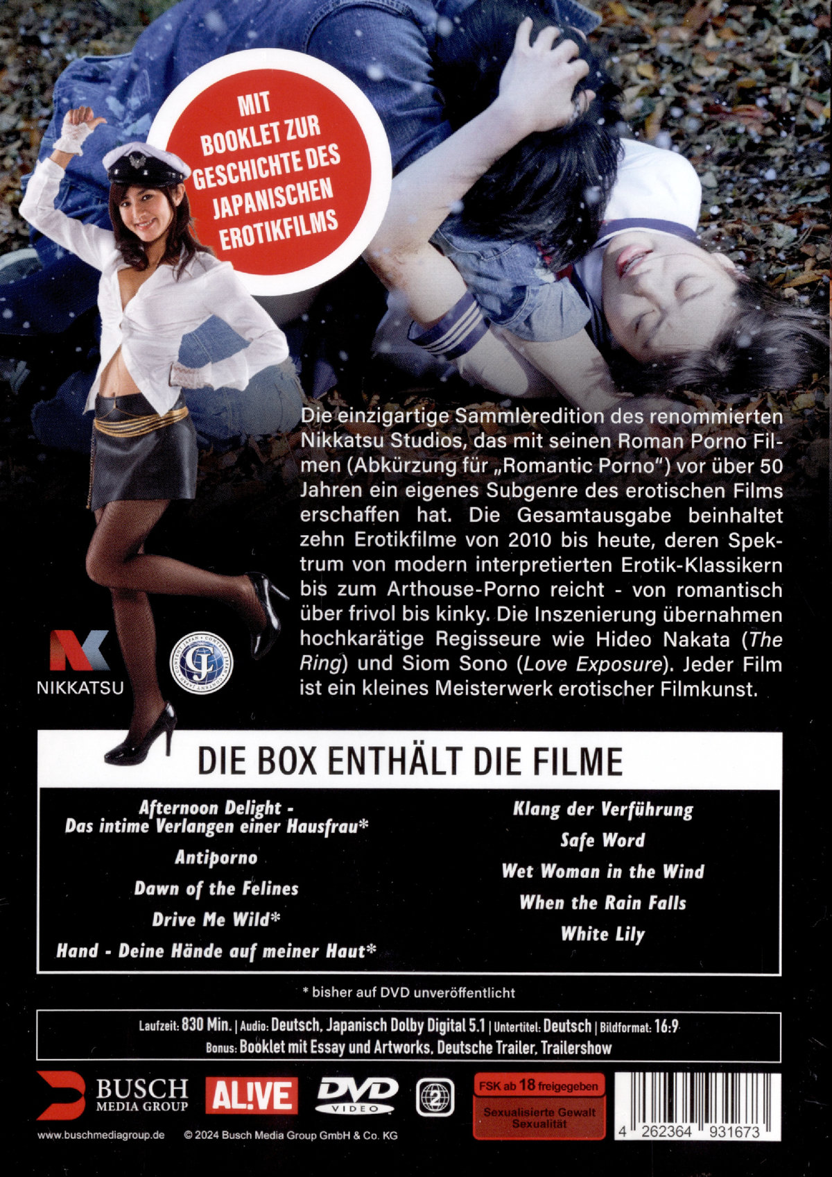 Die einzigartige Sammleredition des renommierten Nikkatsu Studios, das mit seinen Roman Porno Filmen (Abk. für „Romantic Porno“) vor über 50 Jahren ein eigenes Subgenre des erotischen Films erschaffen hat. Die Gesamtausgabe beinhaltet zehn Erotikfilme von 2010 bis heute, deren Spektrum von modern interpretierten Erotik-Klassikern bis zum Arthouse-Porno reicht - von romantisch über frivol bis kinky. Die Inszenierung übernahmen hochkarätige Regisseure wie Hideo Nakata ("The Ring") und Siom Sono ("Love Exposure"). Jeder Film ist ein kleines Meisterwerk erotischer Filmkunst.