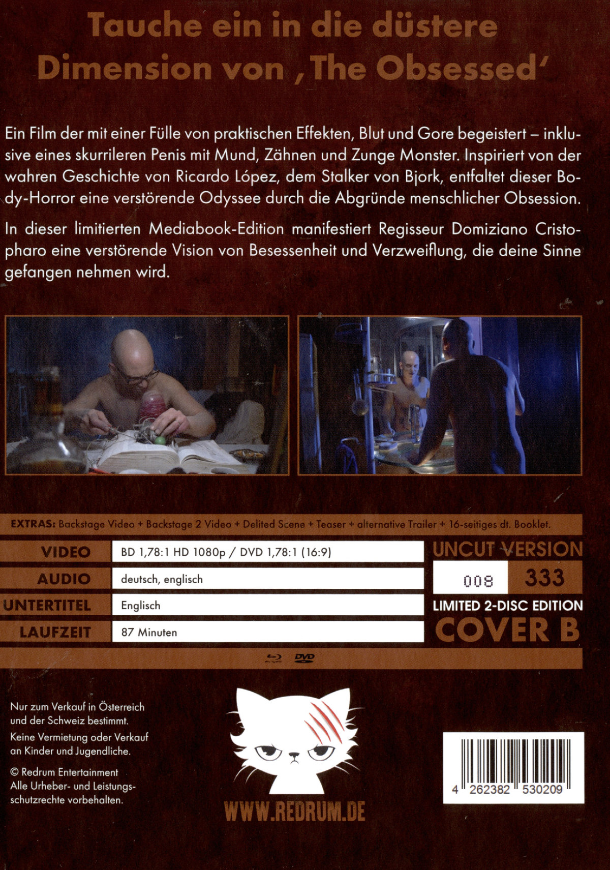 In dieser limitierten Mediabook-Edition manifestiert Regisseur Domiziano Cristopharo eine verstörende Vision von Besessenheit und Verzweiflung, die deine Sinne gefangen nehmen wird.