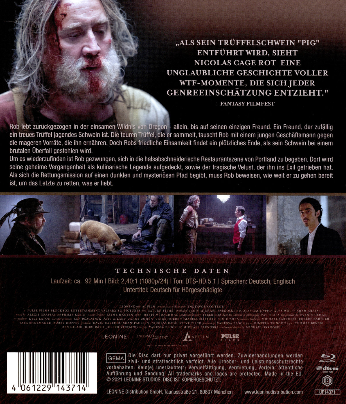 - "Als sein Trüffelschwein entführt wird, sieht Nicolas Cage ROT. Eine unglaubliche Geschichte voller WTF-Momente, die sich jeder Genreeinschätzung entzieht" - (Fantasy Filmfest)