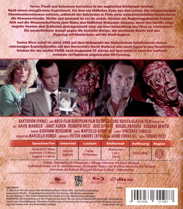 Tonino Ricci schuf im Jahre 1982 auf dem Höhepunkt der italienischen Splatterwelle diesen reinrassigen Exploitationfilm mit den Horrorstars David Warbeck und Janet Agren in den Hauptrollen. Erleben Sie die nackte PANIK nach insgesamt 25 Jahren auf dem Index in Form der weltweit erstmals verfügbaren ungekürzten HD-Fassung..