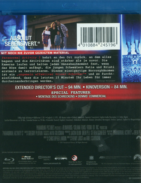 Produktinformationen "Paranormal Activity 3 - Extended Directors Cut (blu-ray)"