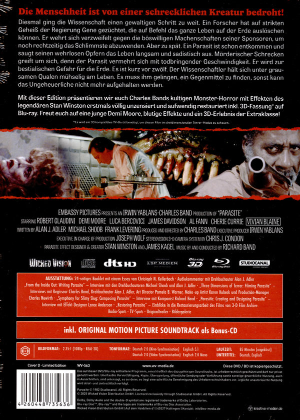 Produktinformationen "Parasite - Killer Parasit 3D - Uncut Mediabook Edition (blu-ray) (D)"