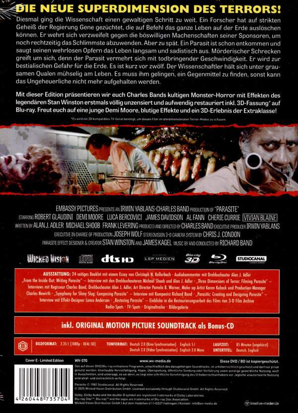 Produktinformationen "Parasite - Killer Parasit 3D - Uncut Mediabook Edition (blu-ray) (E)"