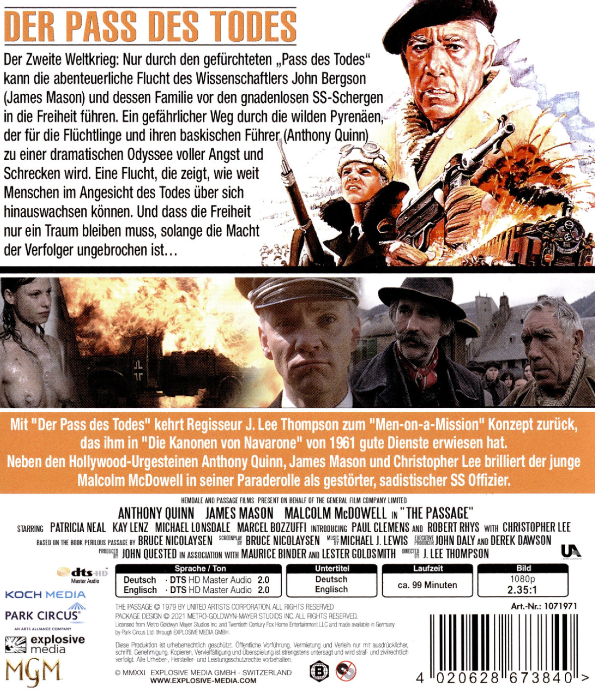 Mit "Der Pass des Todes" aus dem Jahr 1979 kehrt Regisseur J. Lee Thompson zum "Men-on-a-Mission" Konzept zurück, das ihm in "Die Kanonen von Navarone" von 1961 gute Dienste erwiesen hat, um eine filmische Version von Bruce Nicolaysens Roman zu entwickeln. Es ist eine Rückkehr in eine Landschaft des Zweiten Weltkriegs, diesmal in den Pyrenäen, wo in einem Überlebenskampf zahlreiche physische und psychische Herausforderungen überwunden werden müssen. J. Lee Thompson verleiht dieser komplexen Geschichte eine actionorientierte Stimmung, welche er in tollen Landschaften umzusetzen versteht.
