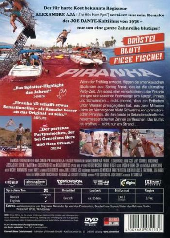 Wenn der Frühling erwacht, flippen die amerikanischen Studenten aus: Spring Break, das ist die ultimative Party-Zeit. Am sonst eher verschlafenen Lake Victoria drängen sich tausende Feierwütige zum Tanzen, Trinken und Schwimmen, nicht ahnend, dass ein Erdbeben unter Wasser preisgegeben hat, was zwei Millionen Jahre im Verborgenen blieb! Schwärme von prähistorischen Piranhas, die ihre Beute in Sekundenschnelle mit rasiermesserscharfen Zähnen zerfleischen. Das Buffet ist eröffnet – nicht nur am Strand ...