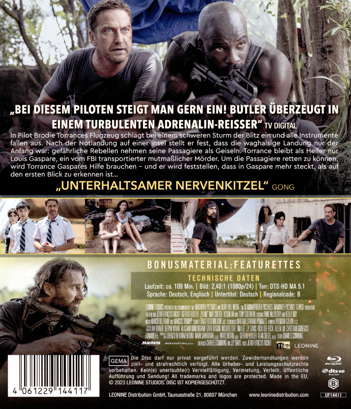 In dem packenden und nervenaufreibenden Action-Thriller PLANE von Regisseur Jean-François Richet (Public Enemy No. 1 - Mordinstinkt) übernimmt Actionstar Gerard Butler ("Chase", "Greenland", "Angel Has Fallen") die Rolle des Piloten Brodie Torrance, der seine Passagiere retten muss. An seiner Seite spielen Mike Colter ("Luke Cage", "Evil"), Daniella Pineda ("Jurassic World: Das gefallene Königreich"), Paul Ben-Victor ("The Irishman", "True Detective") sowie die deutsche Schauspielerin Lilly Krug ("Shattered", "Every Breath You Take").