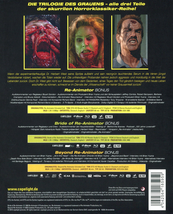 Produktinformationen "Re-Animator 1-3 - Die Trilogie - Uncut Edition (blu-ray)"