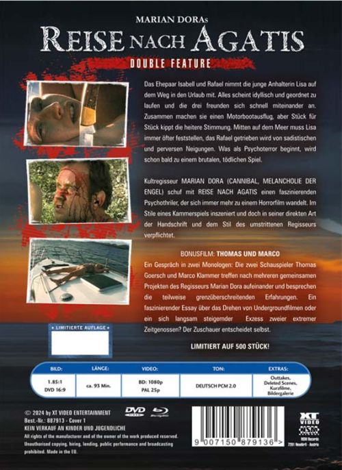 Kultregisseur MARIAN DORA (CANNIBAL, MELANCHOLIE DER ENGEL) schuf mit REISE NACH AGATIS einen faszinierenden Psychothriler, der sich immer mehr zu einem Horrorfilm wandelt. Im Stile eines Kammerspiels inszeniert und doch in seiner direkten Art der Handschrift und dem Stil des umstrittenen Regisseurs verpflichtet.