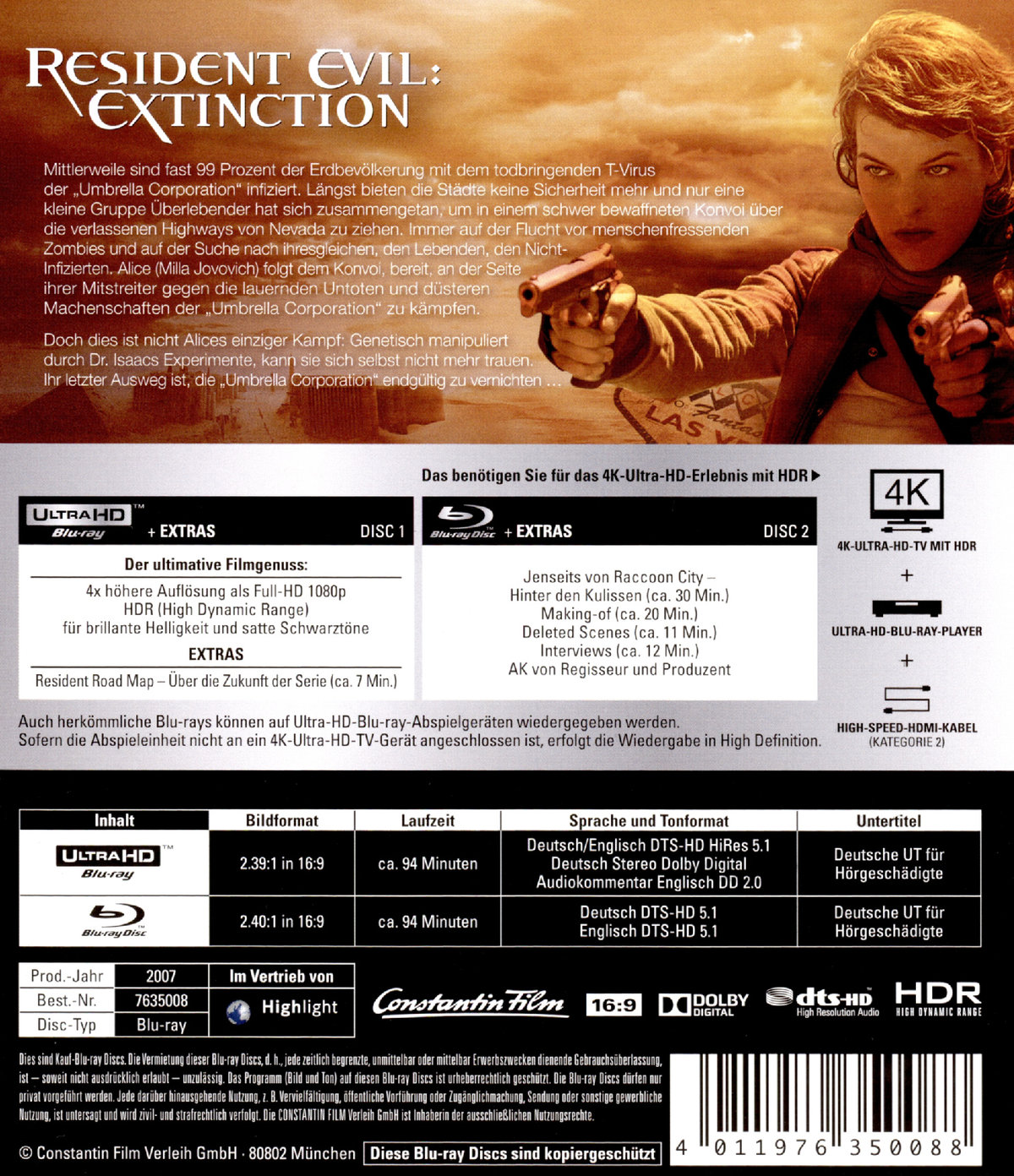 Produktinformationen "Resident Evil: Extinction (4K Ultra HD)"
