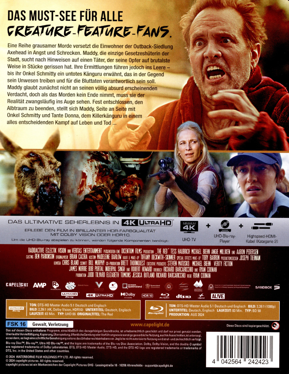 Eine Reihe grausamer Morde versetzt die Einwohner der Outback-Siedlung Axehead in Angst und Schrecken. Maddy, die einzige Gesetzeshüterin der Stadt, sucht nach Hinweisen auf einen Täter, der seine Opfer auf brutalste Weise in Stücke gerissen hat. Ihre Ermittlungen führen jedoch ins Leere – bis ihr Onkel Schmitty ein untotes Känguru erwähnt, das in der Gegend sein Unwesen treiben und für die Bluttaten verantwortlich sein soll. Maddy glaubt zunächst nicht an seinen völlig absurd erscheinenden Verdacht, doch als das Morden kein Ende nimmt, muss sie der Realität zwangsläufig ins Auge sehen. Fest entschlossen, den Albtraum zu beenden, stellt sich Maddy, Seite an Seite mit Onkel Schmitty und Tante Donna, dem Killerkänguru in einem alles entscheidenden Kampf auf Leben und Tod ...