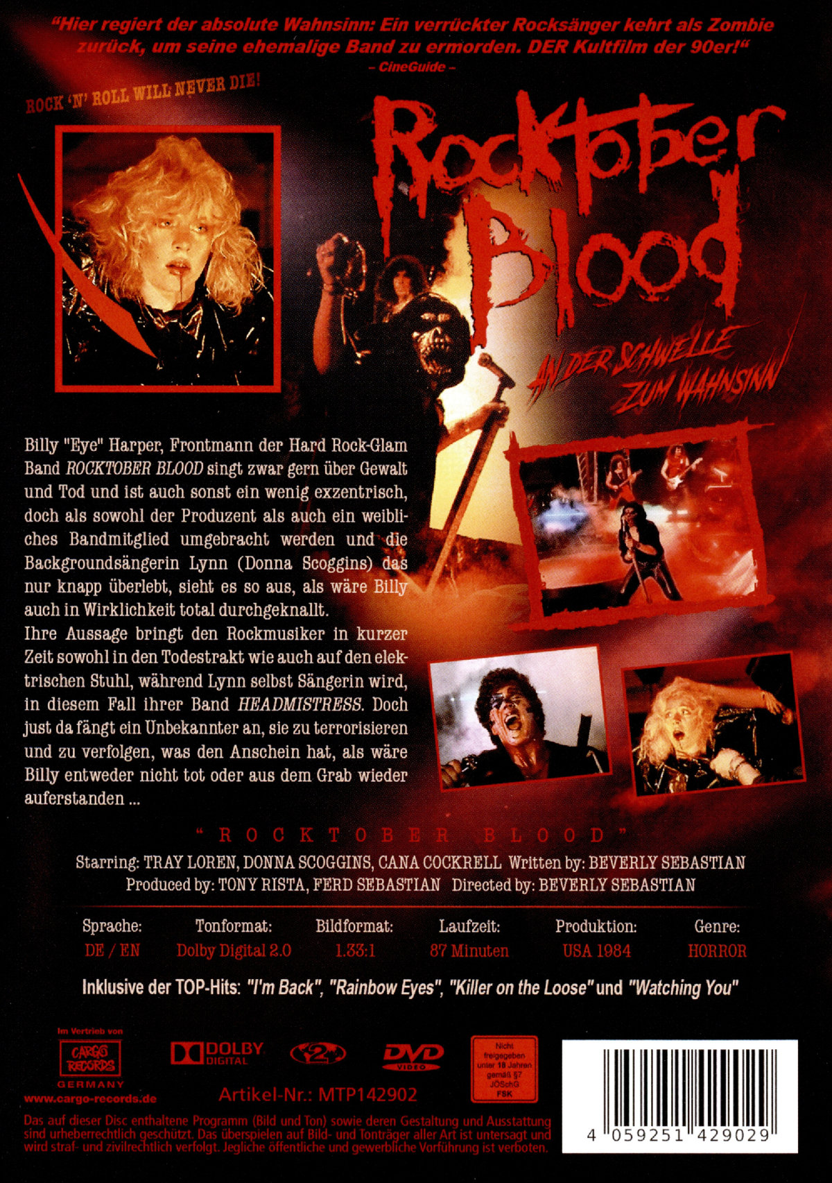 Billy "Eye" Harper, Frontmann der Hard Rock-Glam Band "Rocktober Blood" singt zwar gern über Gewalt und Tod und ist auch sonst ein wenig exzentrisch, doch als sowohl der Produzent als auch ein weibliche Bandmitglied umgebracht werden und die Backgroundsängerin Lynn (Donna Scoggins) das nur knapp überlebt, sieht es so aus, als wäre Billy auch in Wirklichkeit durchgeknallt. Ihre Aussage bringt ihn in relativ kurzer Zeit sowohl in den Todestrakt wie auch auf den elektrischen Stuhl, während Lynn selbst Sängerin wird, in diesem Fall ihrer Band "Headmistress". Doch just da fängt ein Unbekannter an, sie zu terrorisieren und zu verfolgen, was den Anschein hat, als wäre Billy entweder nicht tot oder aus dem Grab wieder auferstanden ...