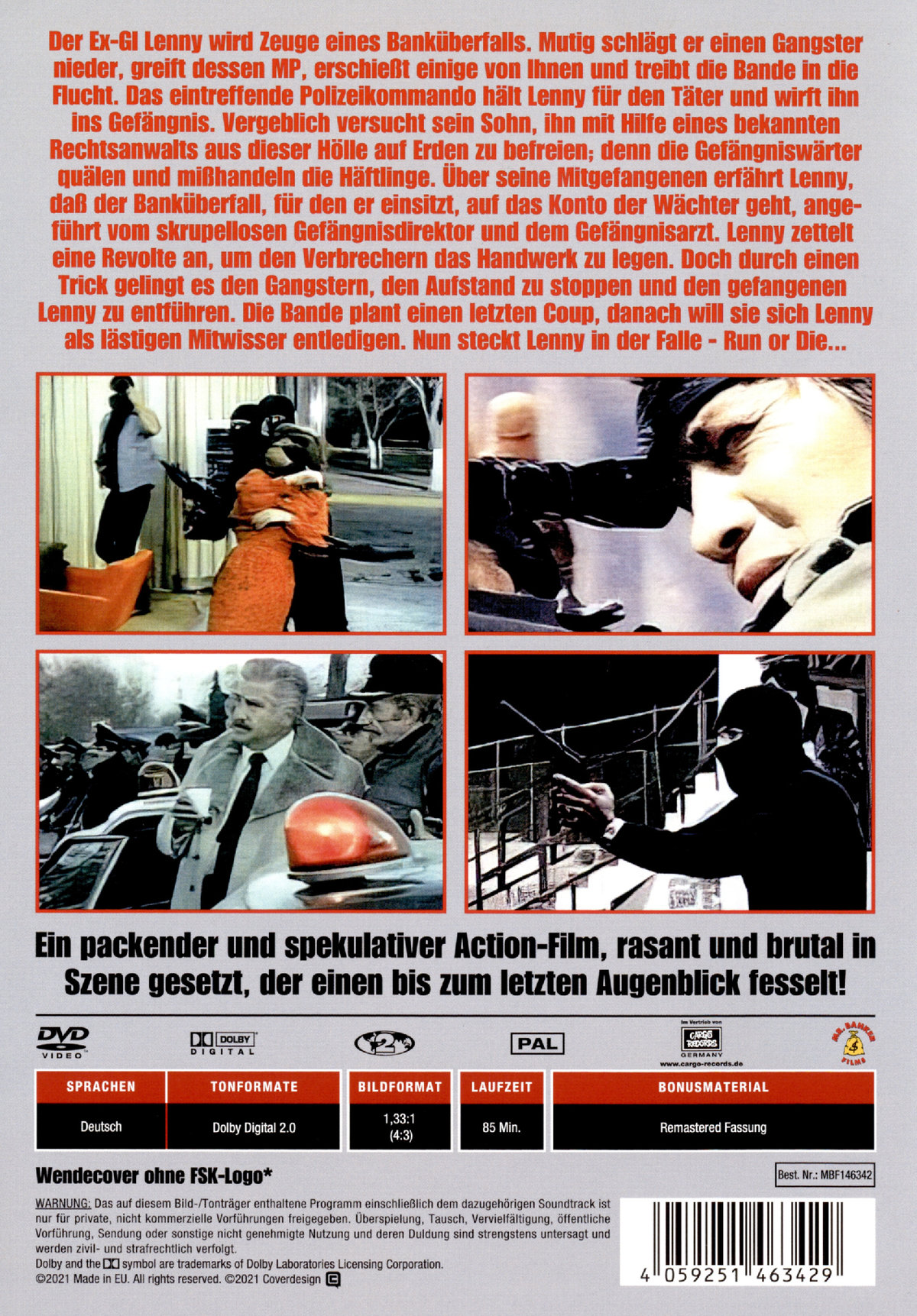 Über seine Mitgefangenen erfährt Lenny, daß der Banküberfall, für den er einsitzt, auf das Konto der Wächter geht, angeführt vom skrupellosen Gefängnisdirektor und dem Gefängnisarzt. Lenny zettelt eine Revolte an, um den Verbrechern das Handwerk zu legen. Doch durch einen Trick gelingt es den Gangstern, den Aufstand zu stoppen und den gefangenen Lenny zu entführen. Die Bande plant einen letzten Coup, danach will sie sich Lenny als lästigen Mitwisser entledigen. Nun steckt Lenny in der Falle - Run or Die ...