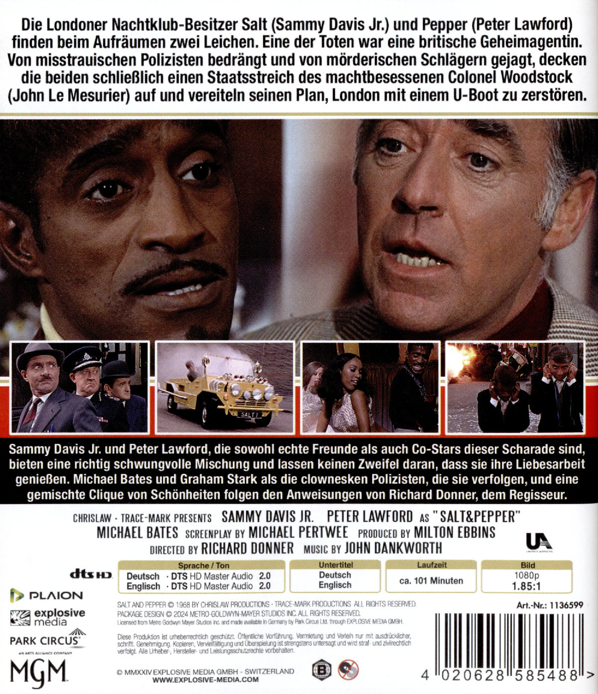 Das Leben unserer Helden ist kompliziert, denn sie werden in ein halbes Dutzend Morde und jede Menge Bösewichte verwickelt, die mit nichts Geringerem als einem mit Atomraketen ausgerüsteten Polaris-U-Boot die Zügel der Regierung übernehmen wollen .Unglaublich? Natürlich. Aber Mr. Davis, der Lieder und Tänze vorführt, Humphrey Bogart, James Cagney und andere nachahmt, und Mr. Lawford, höflich und hip, nehmen die Morde, die Fieslinge und die Mädels mit Witzen und lustigen Sprüchen und der Leichtigkeit von ein paar Herren, die sich auskennen. Michael Bates und Graham Stark als die clownesken Polizisten, die sie verfolgen, und eine gemischte Clique von Schönheiten folgen den Anweisungen von Richard Donner, dem Regisseur, um alles im rasanten Tempo von Michael Pertwees Flip-Dialog am Laufen zu halten.