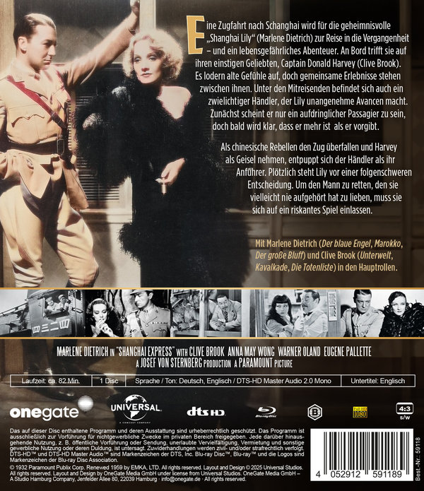 Ein Oscar-prämiertes Meisterwerk von Hollywood-Regisseur Josef von Sternberg voller Sinnlichkeit, Spannung und ikonischer Bilder und seiner Muse Marlene Dietrich (Der blaue Engel, Marokko, Der große Bluff) und Clive Brook (Unterwelt, Kavalkade, Die Totenliste) in den Hauptrollen sowie Warner Oland (Charlie Chan) und vielen weiteren bekannten Gesichtern der 30er Jahre Hollywood-Ära.