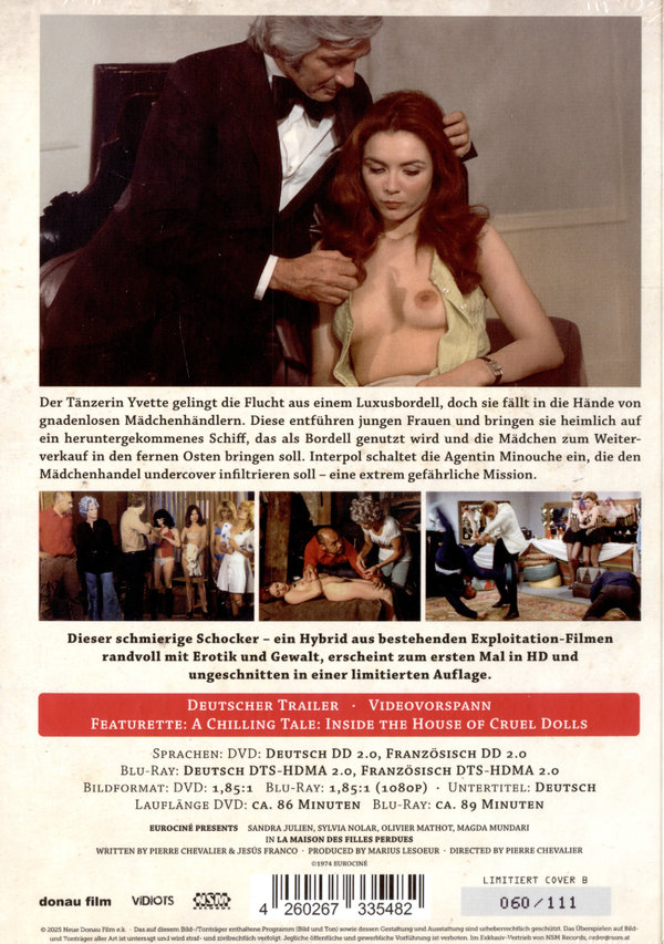 Dieser schmierige Schocker aus der Eurociné Schmiede, ein schamloser Hybrid aus bestehenden europäischen Exploitationfilmen, randvoll mit Erotik und Gewalt, erscheint zum ersten Mal in HD und ungeschnitten in einer limitierten Auflage.