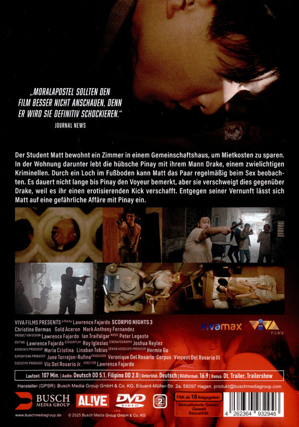 Spannender Erotik-Thriller über die Affäre eines Voyeurs mit einer Gangsterbraut. Der Student Matt bewohnt ein Zimmer in einem Gemeinschaftshaus, um Mietkosten zu sparen. In der Wohnung darunter lebt die hübsche Pinay mit ihrem Mann Drake, einem zwielichtigen Kriminellen. Durch ein Loch im Fußboden kann Matt das Paar regelmäßig beim Sex beobachten. Es dauert nicht lange bis Pinay den Voyeur bemerkt, aber sie verschweigt dies gegenüber Drake, weil es ihr einen erotisierenden Kick verschafft. Entgegen seiner Vernunft lässt sich Matt auf eine gefährliche Affäre mit Pinay ein.