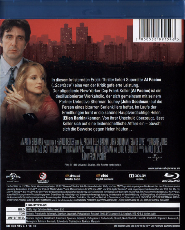 Frank Keller ein ausgebrannter Cop auf der Jagd nach einem verrückten Serienkiller. Drei Männer wurden in fremden Betten regelrecht hingerichtet, und immer spielte der Mörder den Song "Sea of Love". Ellen Barkin alias Helen ist Kellers Hauptverdächtige - und mehr, denn eine spannende Beziehung voller Erotik bahnt sich zwischen den beiden an. Für Frank allerdings ist das Verhältnis ein lebensgefährliches Abenteuer. Drei Männer hat es schon erwischt, und jede Nacht, die er mit Helen verbringt, kann seine letzte sein....