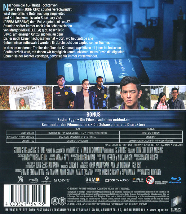Nachdem die 16-jährige Tochter von David Kim (JOHN CHO) spurlos verschwindet, wird eine örtliche Untersuchung eingeleitet und Kriminalkommissarin Rosemary Vick (DEBRA MESSING) dem Fall zugeteilt. Als es 37 Stunden später immer noch kein Lebenszeichen von Margot (MICHELLE LA) gibt, beschließt David, am einzigen Ort zu suchen, an dem bisher noch keiner nachgesehen hat – dort, wo heutzutage alle Geheimnisse aufbewahrt werden: Er durchsucht den Laptop seiner Tochter.