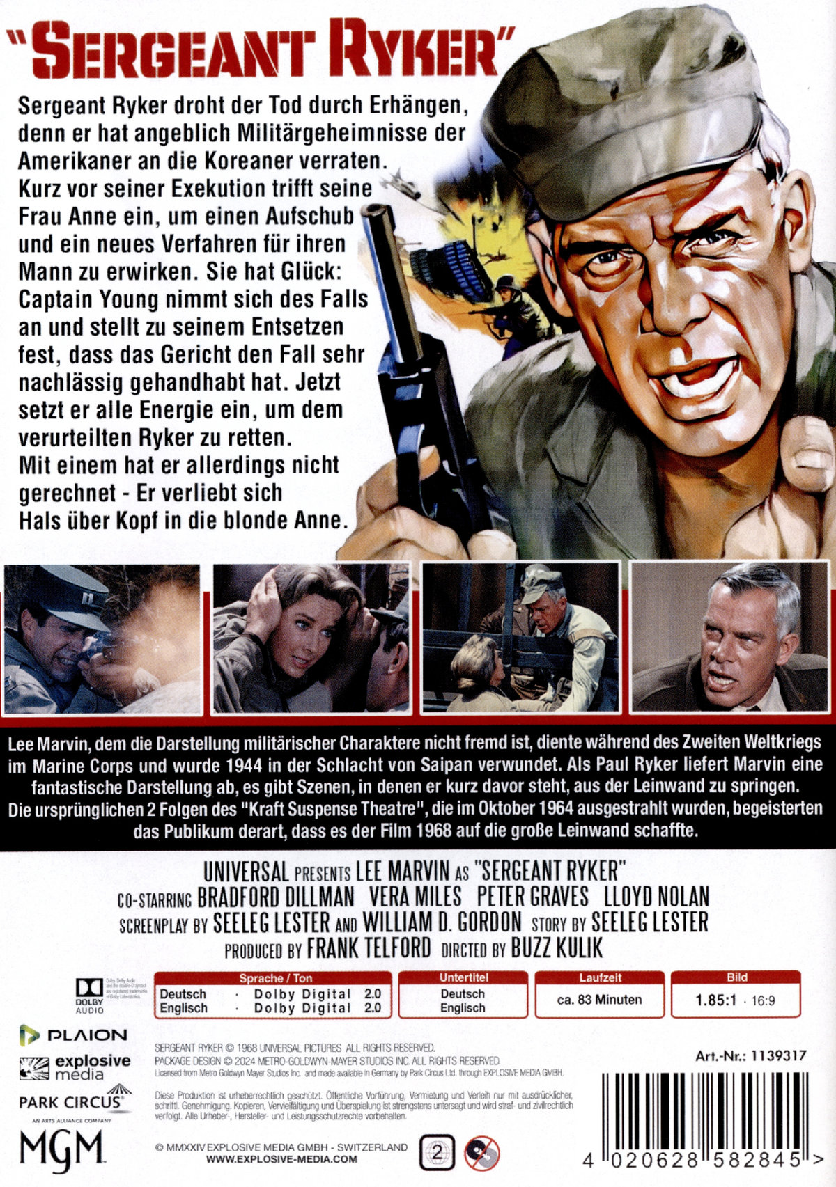 Marvin, dem die Darstellung militärischer Charaktere nicht fremd ist, diente während des Zweiten Weltkriegs im Marine Corps und wurde 1944 in der Schlacht von Saipan verwundet. Er ist hier als Ryker sehr gut und es gibt ein paar Szenen, in denen Marvin kurz davor steht, aus der Leinwand zu springen. Marvin starb viel zu früh im Alter von 63 Jahren und hinterließ viele denkwürdige Filmklassiker.