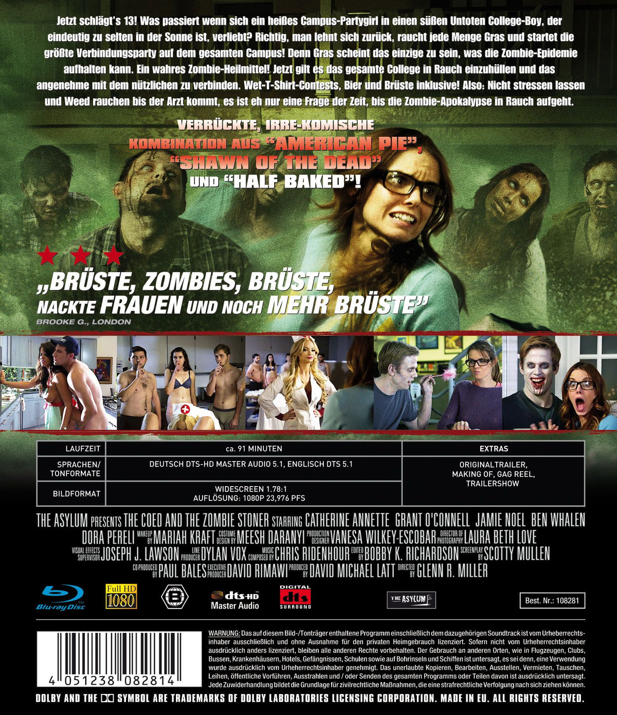 Jetzt schlägt's 13! Was passiert wenn sich ein heißes Campus-Partygirl in einen süßen Untoten College-Boy, der eindeutig zu selten in der Sonne ist, verliebt? Richtig, man lehnt sich zurück, raucht jede Menge Gras und startet die größte Verbindungsparty auf dem gesamten Campus! Denn Gras scheint das einzige zu sein, was die Zombie-Epidemie aufhalten kann. Ein wahres Zombie-Heilmittel! Jetzt gilt es das gesamte College in Rauch einzuhüllen und das angenehme mit dem nützlichen zu verbinden.Wet-T-Shirt-Contests, Bier und Brüste inklusive! Also: Nicht stressen lassen und Weed rauchen bis der Arzt kommt, es ist eh nur eine Frage der Zeit, bis die Zombie-Apokalypse in Rauch aufgeht.