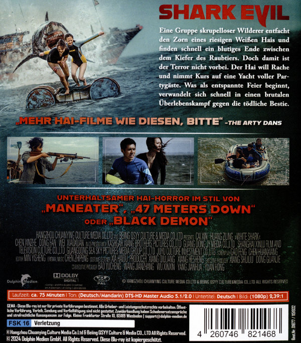 Eine Gruppe skrupelloser Wilderer macht Jagd auf Beute auf offener See und entfacht damit den Zorn eines riesigen Weißen Hais. Schnell finden die Wilderer ihr blutiges Ende zwischen dem Kiefer des Raubtiers. Doch damit ist der Terror nicht vorbei. Der Hai will Rache und nimmt Kurs auf eine Yacht voller Partygäste. Was als entspannte Feier begann, verwandelt sich schnell in einen brutalen Überlebenskampf gegen die tödliche Bestie. Hier kommen Fans von asiatischem Hai-Horror voll auf ihre Kosten. Im Gegensatz zu vielen anderen Creature Features möchte der Film nicht durch eine politische Botschaft belehren, sondern konzentriert sich ganz darauf, sein Publikum zu unterhalten. Er reiht sich als würdiger Vertreter des Genres in eine Filmtradition ein, die sich zeitloser Beliebtheit erfreut und bietet unterhaltsamen Hai-Horror im Stil von „Maneater“, „No Way Up“, „47 Meters Down“ oder „The Great White“.