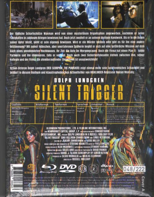 Als ehemaliger Elitesoldat der Special Forces arbeitet Waxman mittlerweile als äußerst kaltblütiger Auftragskiller für die geheime Regierungsorganisation „The Agency“. Ein neuer Auftrag führt ihn zusammen mit der hübschen, aber unerfahrenen Clegg nach Mexico, wo sie eine unbequeme Politikerin ausschalten sollen. Der Einsatz misslingt zunächst, doch schon bald treffen sich die beiden überraschender Weise in San Francisco wieder, wo Waxman sein Opfer endgültig erledigen will. Hier stellt er fest, dass seine frühere Partnerin seine Arbeit behindert und in Wahrheit er selbst das Hauptziel der Agency ist. Er entfesselt einen ultra-brutalen Vergeltungsschlag, um das Geheimnis von Clegg zu lüften und seinen Auftraggeber zu vernichten. 1) Von Regisseur Russell Mulcahy (Highlander, Resident Evil: Extinction Razorback, Ricochet – Der Aufprall) 2) 4 Sterne auf amazon. De 3) Nach Meinung der Fans einer der besten Lundgren Filme! 4)„Eine Geschichte in Form eines Comics, die Gewalt genüsslich zelebriert“ Lexikon des int. Films 5) „Düsterer und harter Action-Thriller“ amazon.de 6) „SILENT TRIGGER ist Action-Entertainment, das einen umhaut!” Hollywood Pictures Home Video