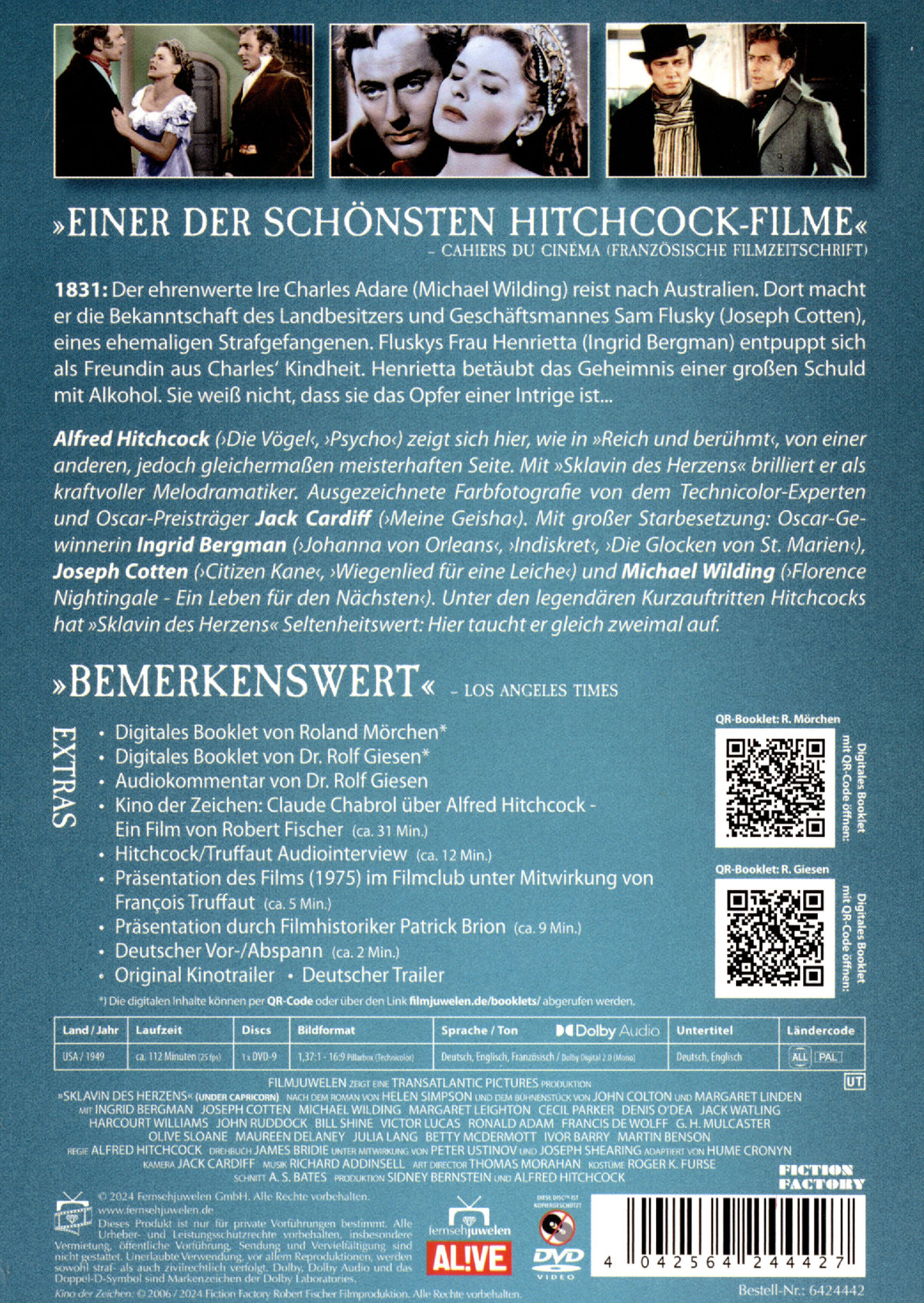 Alfred-Hitchcock-Klassiker mit Ingrid Bergman ("Johanna von Orleans", "Indiskret", "Die Glocken von St. Marien") und Joseph Cotten ("Wiegenlied für eine Leiche", "Ihr Auftritt, Al Mundy") in den Hauptrollen.